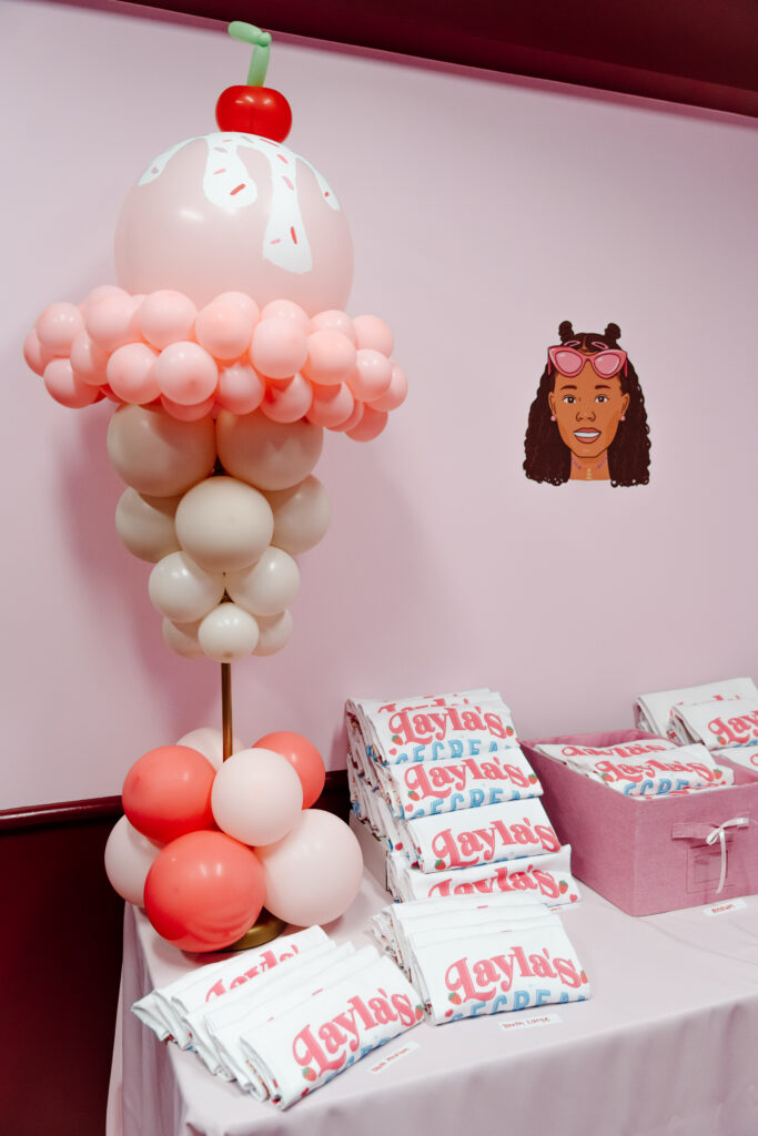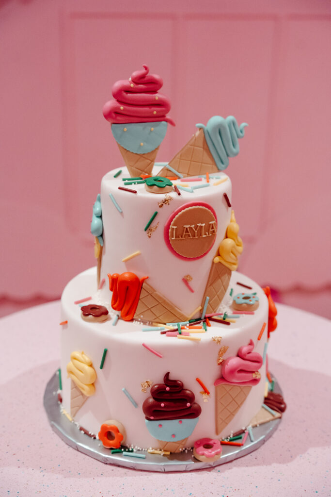 Layla’s party took place at the iconic Museum of Ice Cream – where everywhere you turn is bright pink with fun installations and things to do! We had the venue all to ourselves, so our main goal was to enhance the already adorable space and add lots of customization with Layla’s custom cartoon graphics we had made.