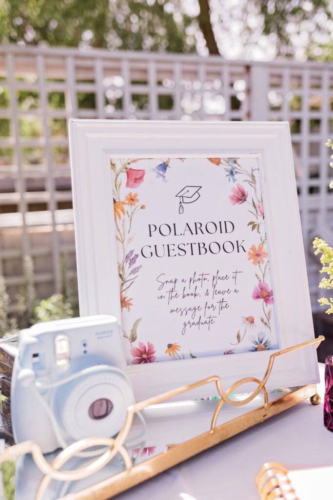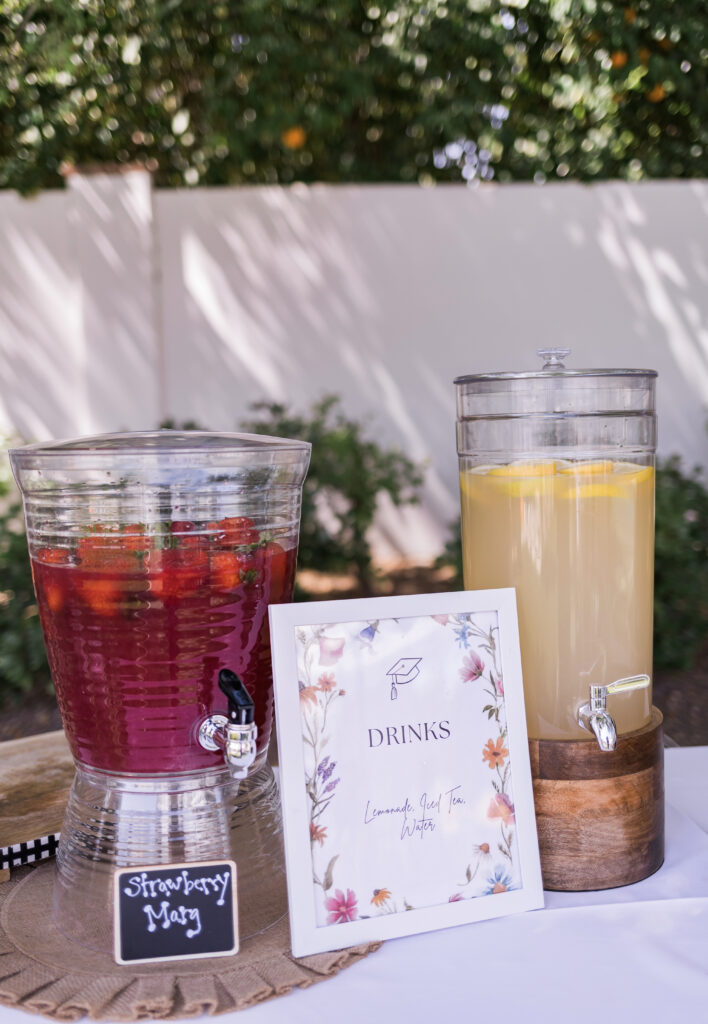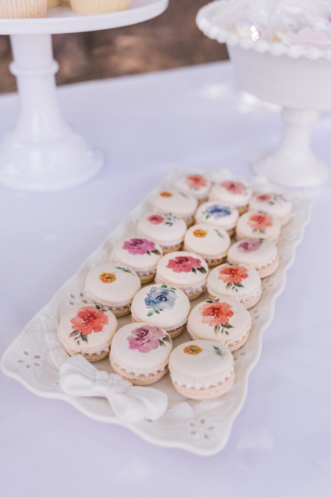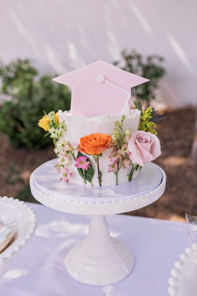 And the desserts have us speechless. How cute is this floral cake with pink grad cap detailing? We’re also obsessed with the watercolor flower macarons… they are almost too pretty to eat… ALMOST!