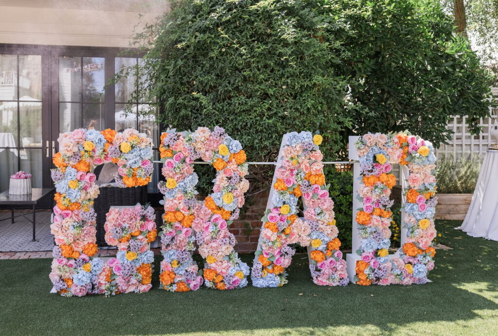 Large “GRAD” letters filled with florals were another popular spot for Alexah and her guests to take photos. We absolutely loved the adorable pennant flag detail that was strung on the bistro lights as well!