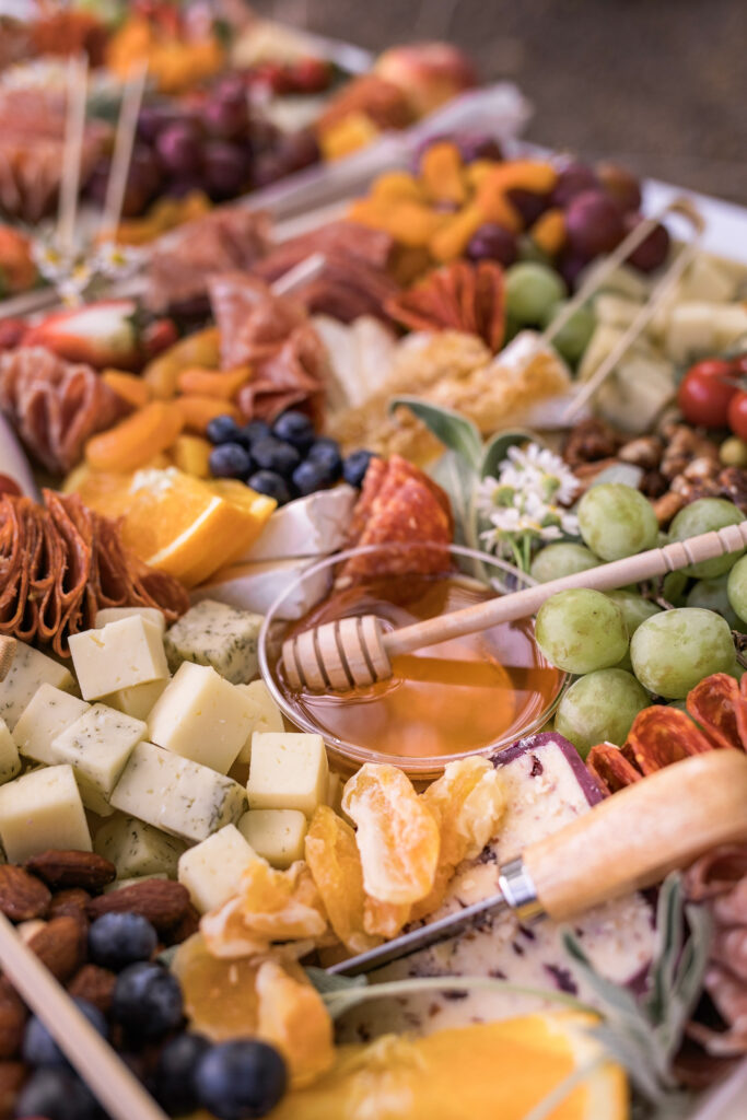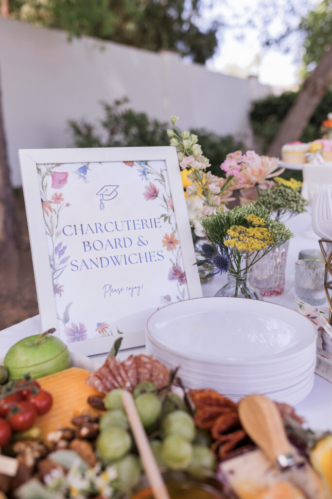 The decor wasn’t the only thing looking gorg at this party… so was the food and beverage! Just look how stunning this charcuterie board is!
