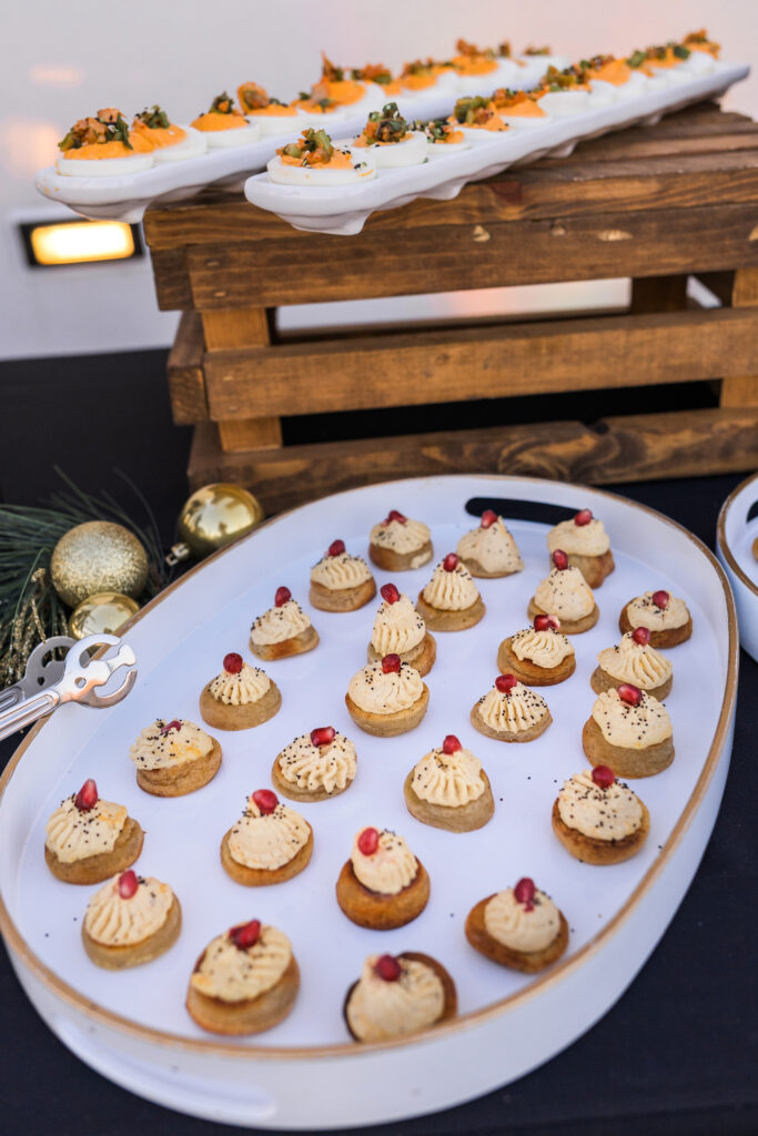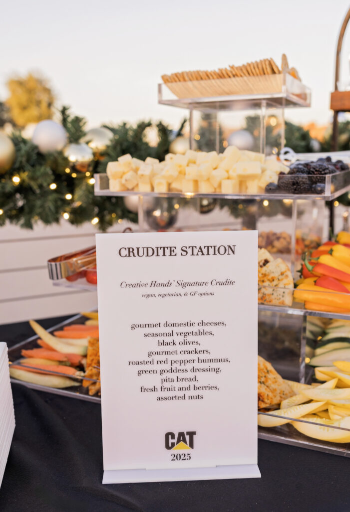 We loved all of the custom elements we were able to add to make the celebration that much more special. Branded acrylic bar & food signs displayed the delicious light bites, desserts, and beverages that were served. We also incorporated custom branded floral picks and stir sticks so Caterpillar was at the forefront of everyone’s minds!